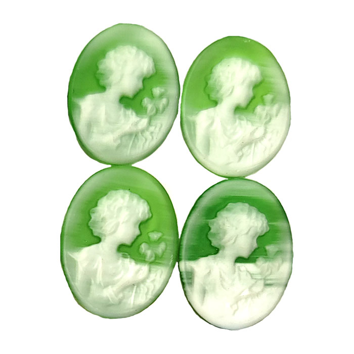 15X20MM WOMAN WITH FLOWER CAMEO CAT'S EYE GREEN