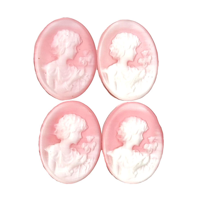 15X20MM WOMAN WITH FLOWER CAMEO CAT'S EYE PINK