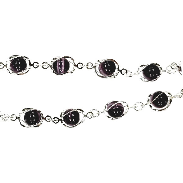 DESCRIPTION:32" NECKLACE , 8MM PURPLE CAT'S EYE WITH SILVER COLOR METAL CAGE.