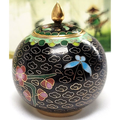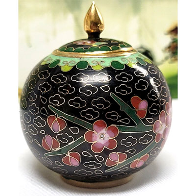 description:This beautiful piece features a lot of intricate detail and exquisite artistry. It features an array of stunningly colored floral patterns in multiple colors embedded in gorgeous cloisonne enamel.