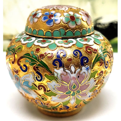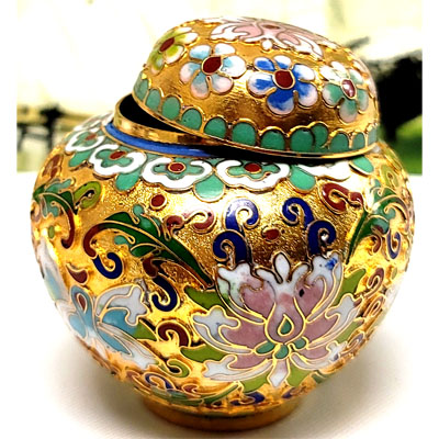 description:This beautiful piece features a lot of intricate detail and exquisite artistry. It features an array of stunningly colored floral patterns in multiple colors embedded in gorgeous cloisonne enamel.