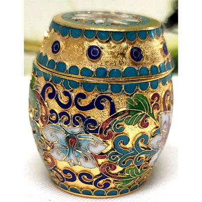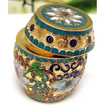 description:This beautiful piece features a lot of intricate detail and exquisite artistry. It features an array of stunningly colored floral patterns in multiple colors embedded in gorgeous cloisonne enamel.