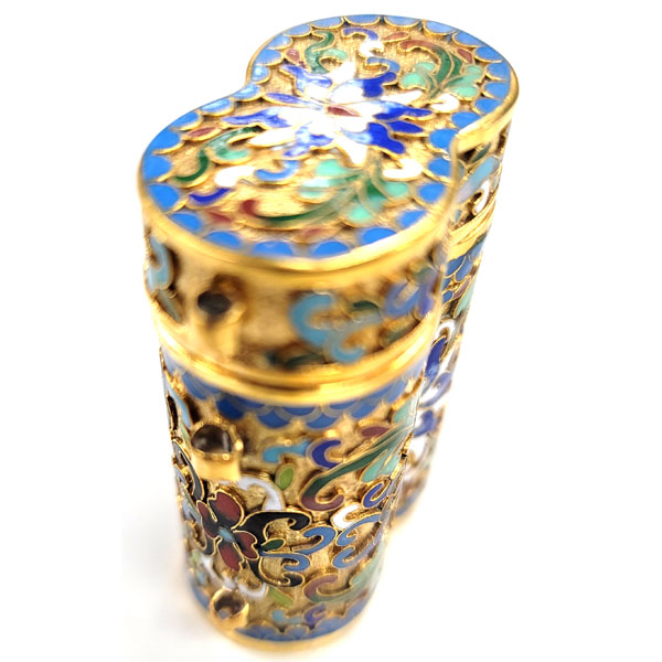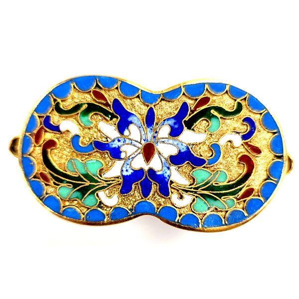 DESCRIPTION: THIS BEAUTIFUL PIECE FEATURES A LOT OF INTRICATE DETAIL AND EXQUISITE ARTISTRY. IT FEATURES AN ARRAY OF STUNNINGLY COLORED FLORAL PATTERNS IN MULTIPLE COLORS EMBEDDED IN GORGEOUS CLOISONNE ENAMEL.