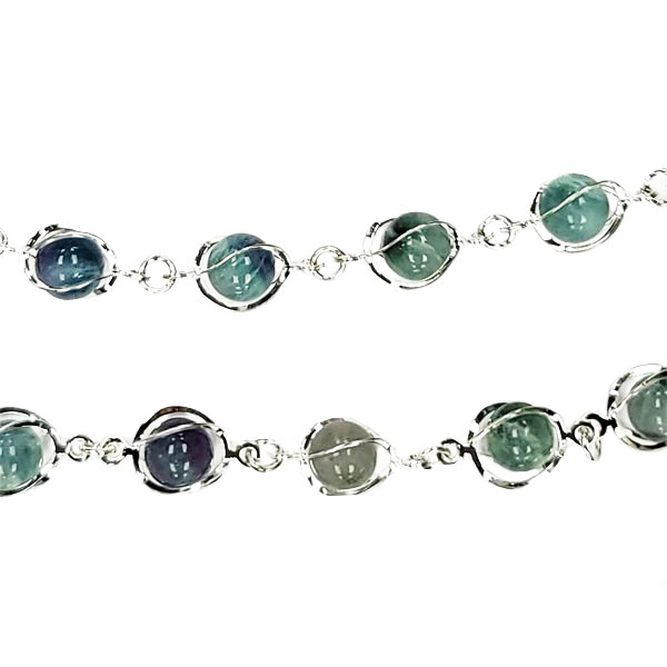 DESCRIPTION:32" NECKLACE , 8MM FLOURITE (GREEN) WITH SILVER COLOR METAL CAGE.
