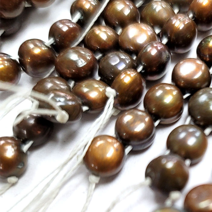 DESCRIPTION: FRESHWATER PEARLS ARE MADE IN NATURE. DYED CHOCOLATE COLOR. SOLD BY STRAND. EACH STRAND ABOUT 15.5-16 INCHES, INCLUDES 55-60 PIECES