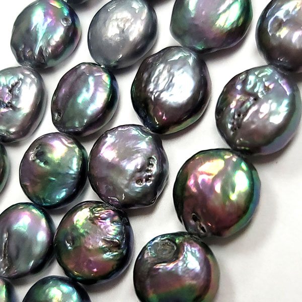 FRESHWATER PEARL COIN 11MM DARK PEACOCK