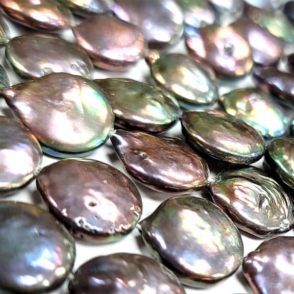 FRESHWATER PEARL COIN 13-13.5MM DARK PEACOCK