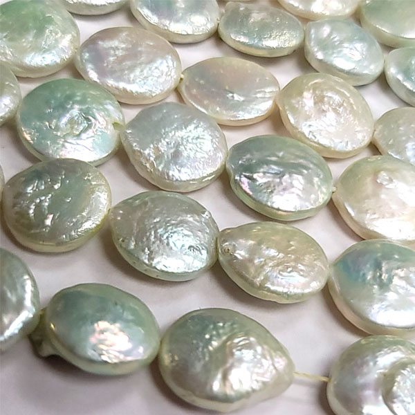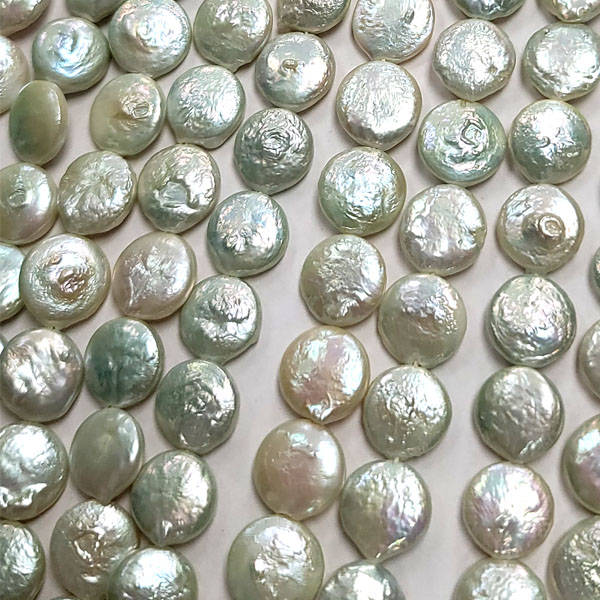 FRESHWATER PEARL COIN 12-13MM VERY LIGHT GREEN