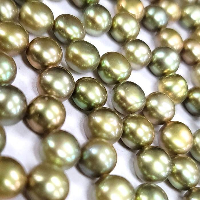 DESCRIPTION: FRESHWATER PEARLS ARE MADE IN NATURE. DYED OLIVE COLOR. SOLD BY STRAND. EACH STRAND ABOUT 15.5-16 INCHES, INCLUDES 60-65 PIECES