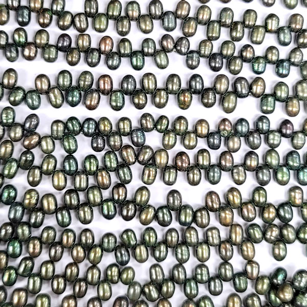 FRESHWATER PEARL DANCING RICE 5-5.5MM GOLDEN GREEN