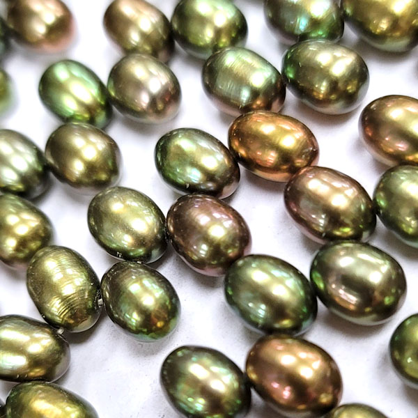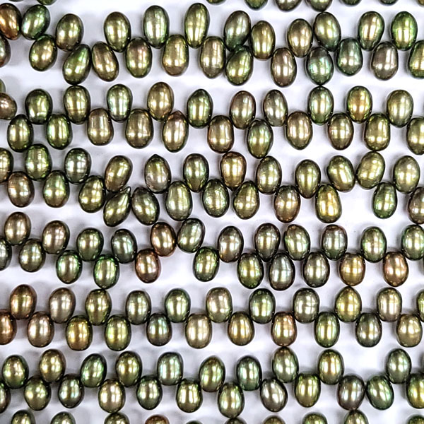 FRESHWATER PEARL DANCING RICE 6-6.5MM GOLDEN GREEN