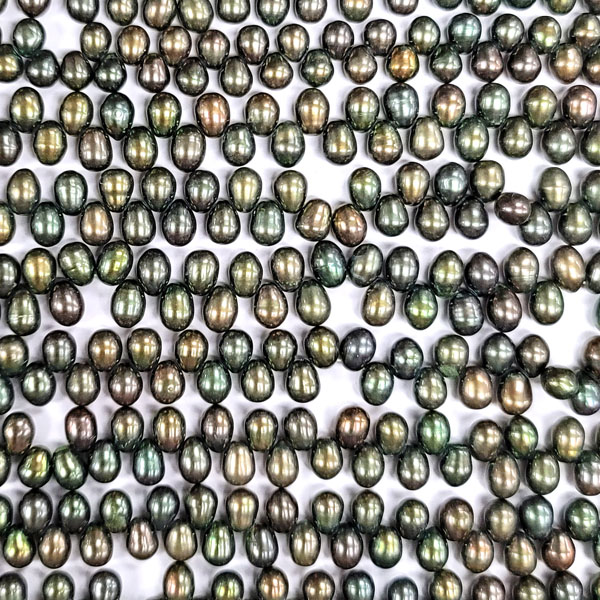 FRESHWATER PEARL DANCING RICE 6-6.5MM GOLDEN GREEN