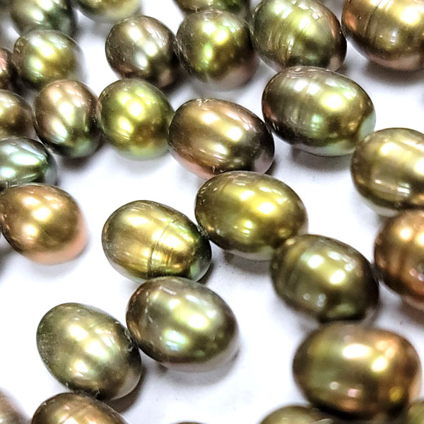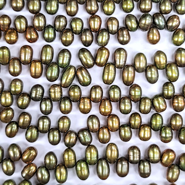FRESHWATER PEARL DANCING RICE 7-7.5MM GOLDEN GREEN
