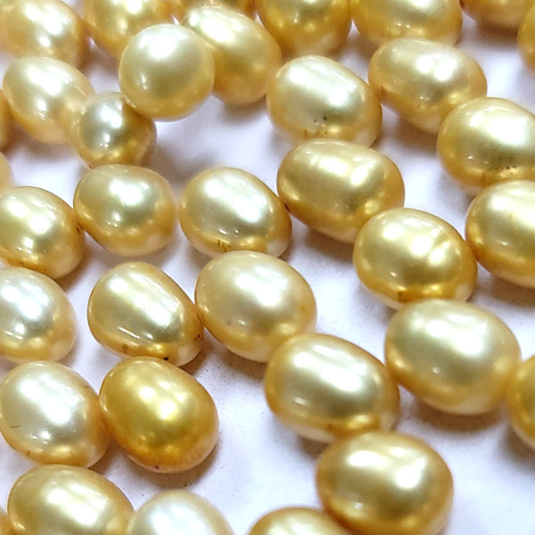 DESCRIPTION: FRESHWATER PEARLS ARE MADE IN NATURE. DYED YELLOW COLOR. SOLD BY STRAND. EACH STRAND ABOUT 15.5-16 INCHES, INCLUDES 85-90 PIECES