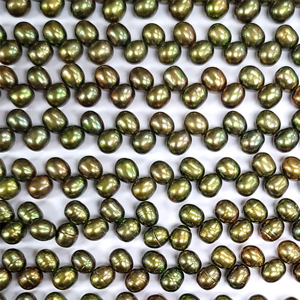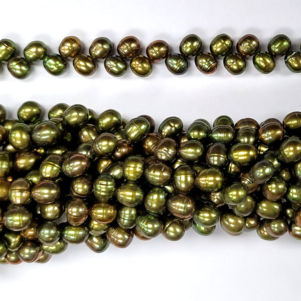 FRESHWATER PEARL DANCING RICE 8-8.5MM GOLDEN GREEN