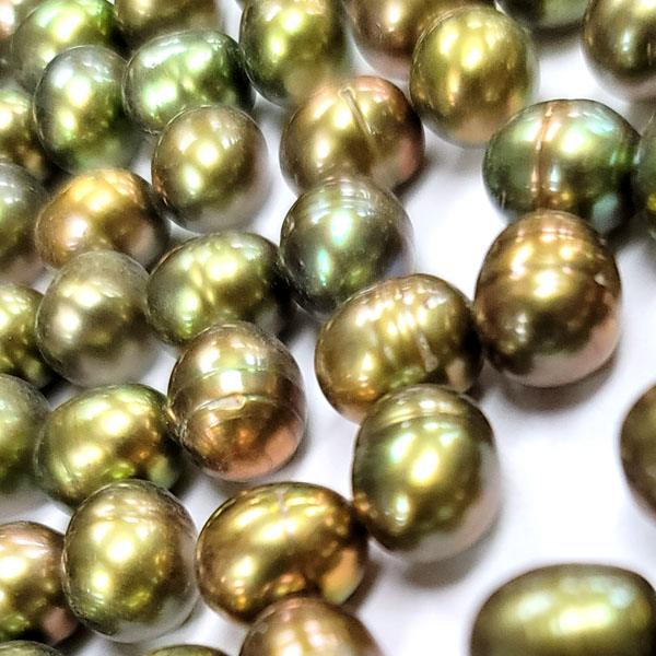 DESCRIPTION: FRESHWATER PEARLS ARE MADE IN NATURE. DYED GOLDEN-GREEN COLOR. SOLD BY STRAND. EACH STRAND ABOUT 15.5-16 INCHES, INCLUDES 63-68 PIECES