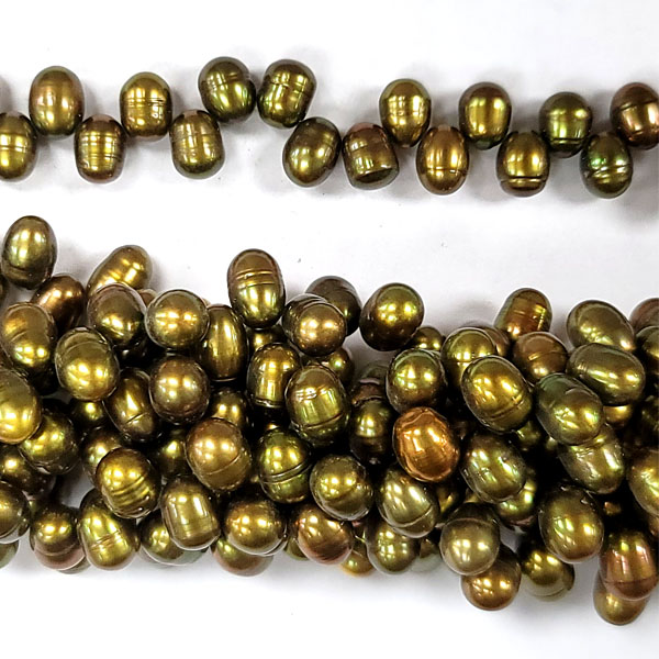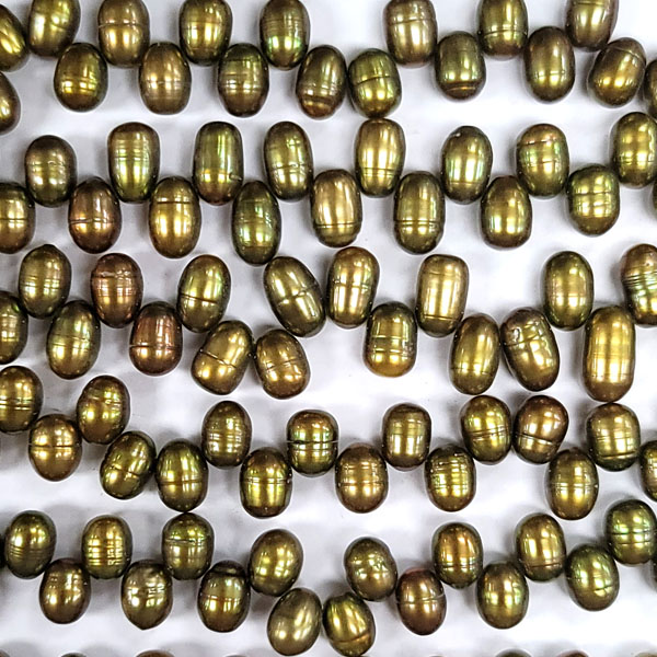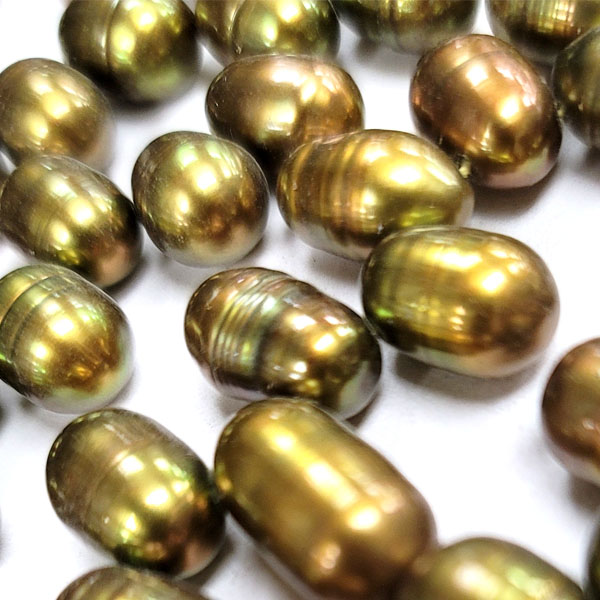 FRESHWATER PEARL DANCING RICE 8-8.5MM GOLDEN GREEN