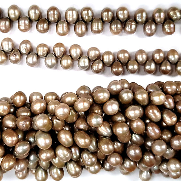 DESCRIPTION: FRESHWATER PEARLS ARE MADE IN NATURE. DYED LIGHT BROWN COLOR. SOLD BY STRAND. EACH STRAND ABOUT 15.5-16 INCHES, INCLUDES 68-73 PIECES