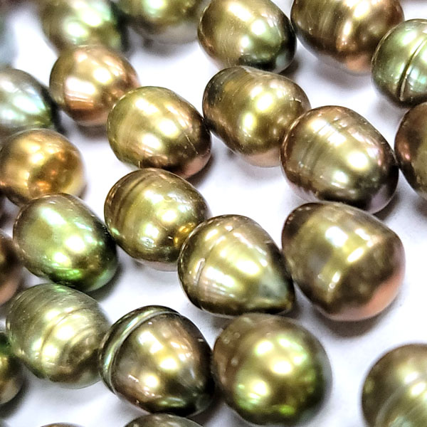 FRESHWATER PEARL DANCING RICE 8.5-9MM GOLDEN GREEN