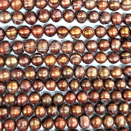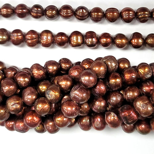 DESCRIPTION: FRESHWATER PEARLS ARE MADE IN NATURE.DYED COPPER COLOR. SOLD BY STRAND. EACH STRAND ABOUT 15.5-16 INCHES INCLUDE 40-50 PIECES.