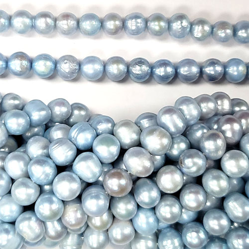 DESCRIPTION: FRESHWATER PEARLS ARE MADE IN NATURE.DYED POWER BLUE COLOR. SOLD BY STRAND. EACH STRAND ABOUT 15.5-16 INCHES INCLUDE 50-55 PIECES.