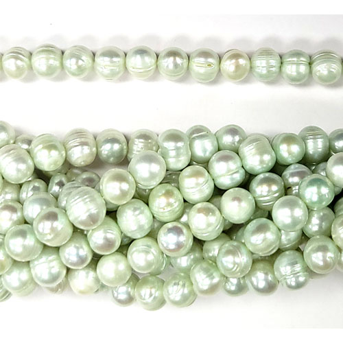 DESCRIPTION: FRESHWATER PEARLS ARE MADE IN NATURE.DYED VERY LIGHT GREEN COLOR. SOLD BY STRAND. EACH STRAND ABOUT 15.5-16 INCHES.ABOUT 50-55 PIECES