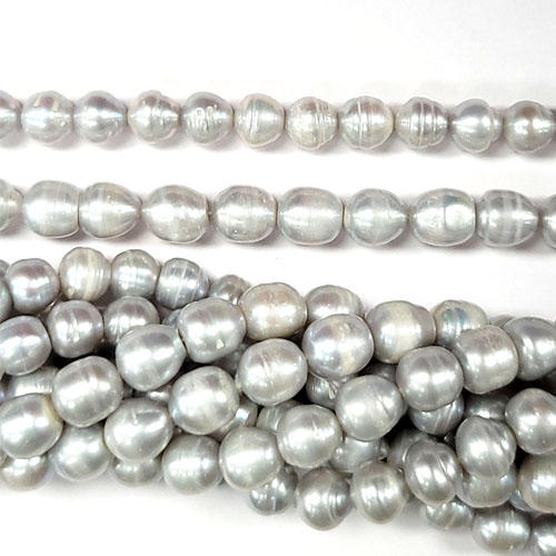 DESCRIPTION: FRESHWATER PEARLS ARE MADE IN NATURE.DYED SILVER GRAY COLOR. SOLD BY STRAND. EACH STRAND ABOUT 15.5-16 INCHES INCLUDE 40-50 PIECES.