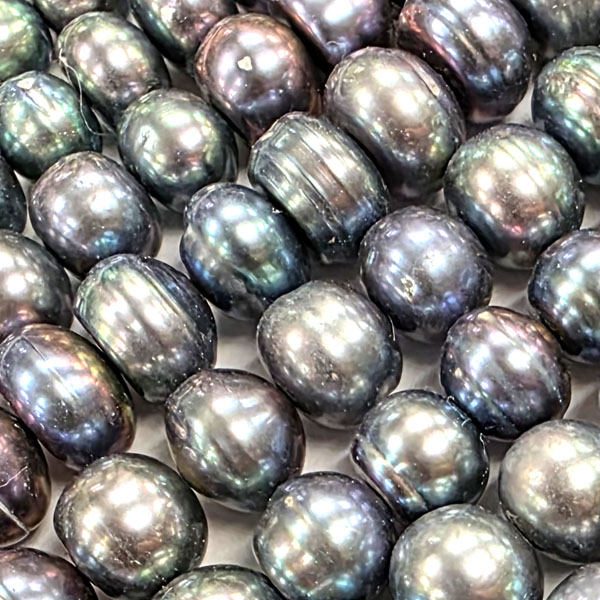 DESCRIPTION: FRESHWATER PEARLS ARE MADE IN NATURE. DYED PEACOCK COLOR. SOLD BY STRAND. EACH STRAND ABOUT 15.5-16 INCHES, ABOUT 85-90 PIECES.