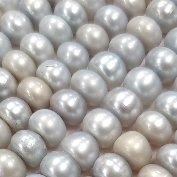 DESCRIPTION: FRESHWATER PEARLS ARE MADE IN NATURE. DYED SILVER COLOR. SOLD BY STRAND. EACH STRAND ABOUT 15.5-16 INCHES, ABOUT 90-95 PIECES
