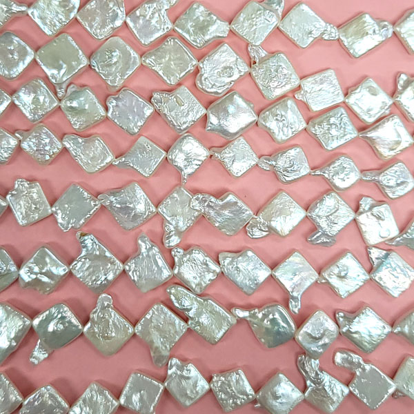 FRESHWATER PEARL SQUARE DIAGONAL DRILLED 13-14MM WHITE