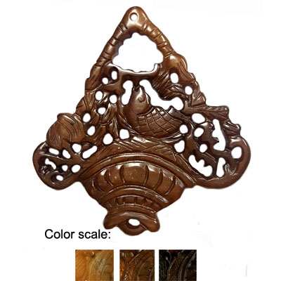HSIU JADE BIRD IN BASKET 65X70MM BROWN PENDANT