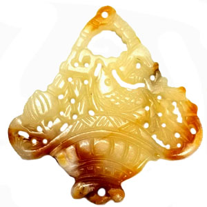 Description:HSIU jade hand carved BIRD IN BASKET pendant