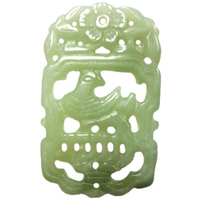 HSIU JADE BIRD ON BIRDCAGE 40X60MM GREEN PENDANT