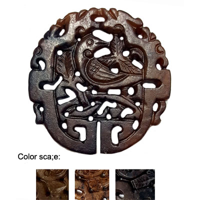 HSIU JADE BIRD IN BIRDCAGE 53MM BROWN PENDANT
