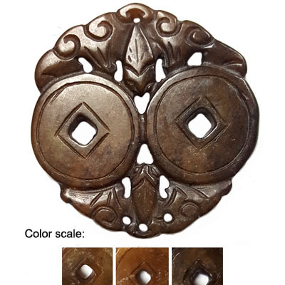 HSIU JADE COUPLE BIRDS WITH COUPLE COINS 57MM BROWN PENDANT
