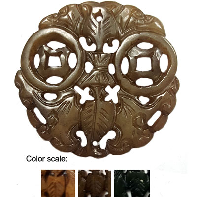 HSIU JADE COUPLE BIRDS WITH DOUBLE MONEY COINS 55MM BROWN PENDANT