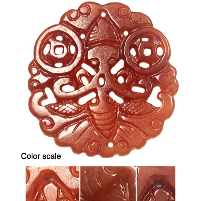 NATURAL NEW JADE DYED RED CARNELIAN COLOR ALL PENDANT HAND CARVED MAY HAVE SOME SLIGHT DIFFERENCES BETWEEN THE COLORING AND PATTERNS.