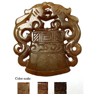 HSIU JADE COUPLE DRAGONS ON TRIPOD 50X54MM BROWN PENDANT