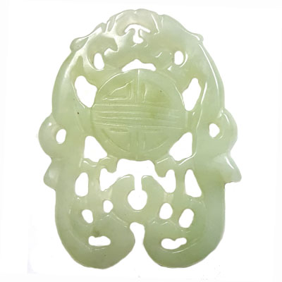 HSIU JADE COUPLE DRAGONS WITH LUCKY SIGN 45X60MM GREEN PENDANT
