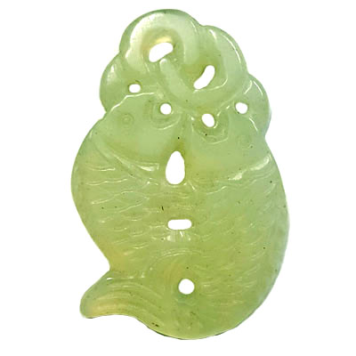 HSIU JADE COUPLE FISHES 35X50MM GREEN PENDANT