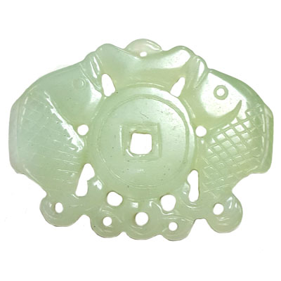 HSIU JADE COUPLE FISHES WITH MONEY COIN 45X65MM GREEN PENDANT