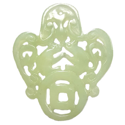 HSIU JADE COUPLE RATS ON MONEY 50X58MM GREEN PENDANT