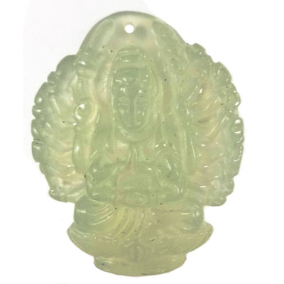 HSIU JADE FINE AVALOKITESVARA 35X45MM GREEN PENDANT