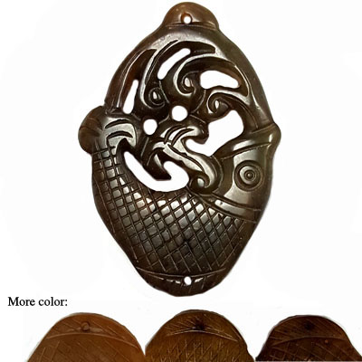 HSIU JADE FISH 42X63MM BROWN PENDANT