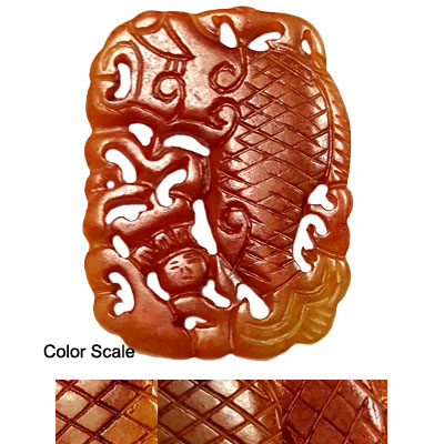 HSIU JADE FISH WITH KID 47X60MM RED PENDANT