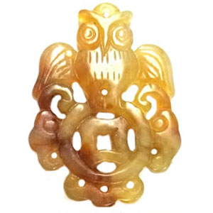 Description:HSIU jade hand carved OWL WITH MONEY COIN pendant