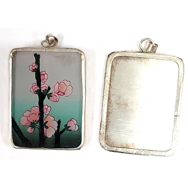 INSIDE PAINTED RECTANGLE 33X43MM FLOWERS PENDANT