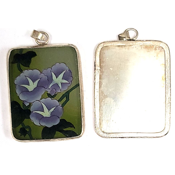 INSIDE PAINTED RECTANGLE 33X43MM FLOWERS PENDANT