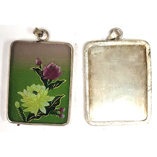 INSIDE PAINTED RECTANGLE 33X43MM FLOWERS PENDANT