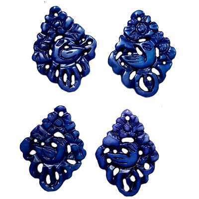 JADE SMALL PENDANT BIRD WITH FLOWER 30X40MM BLUE (4 PCS)